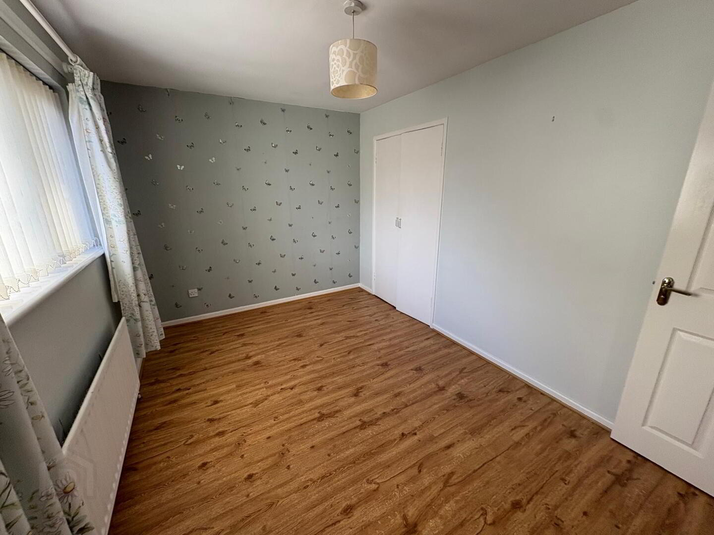 Double room with laminate flooring, single radiator and two single power points.