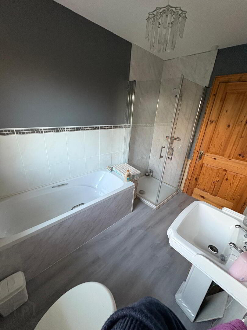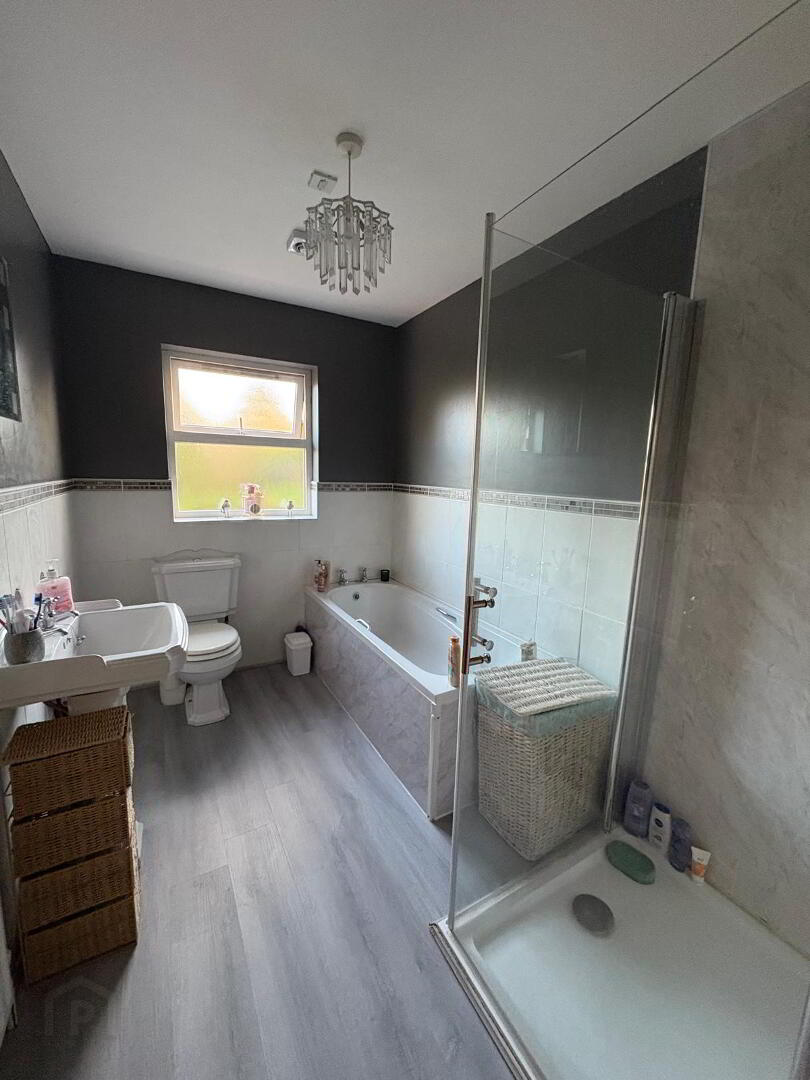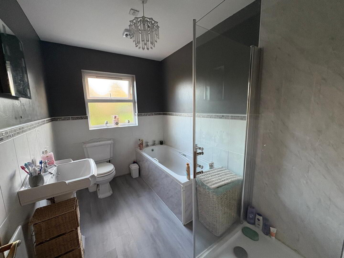 Completed with white suite, WC, WHB, bath and separate shower cubicle (mains) LVP water resistant flooring, extractor fan and single radiator.