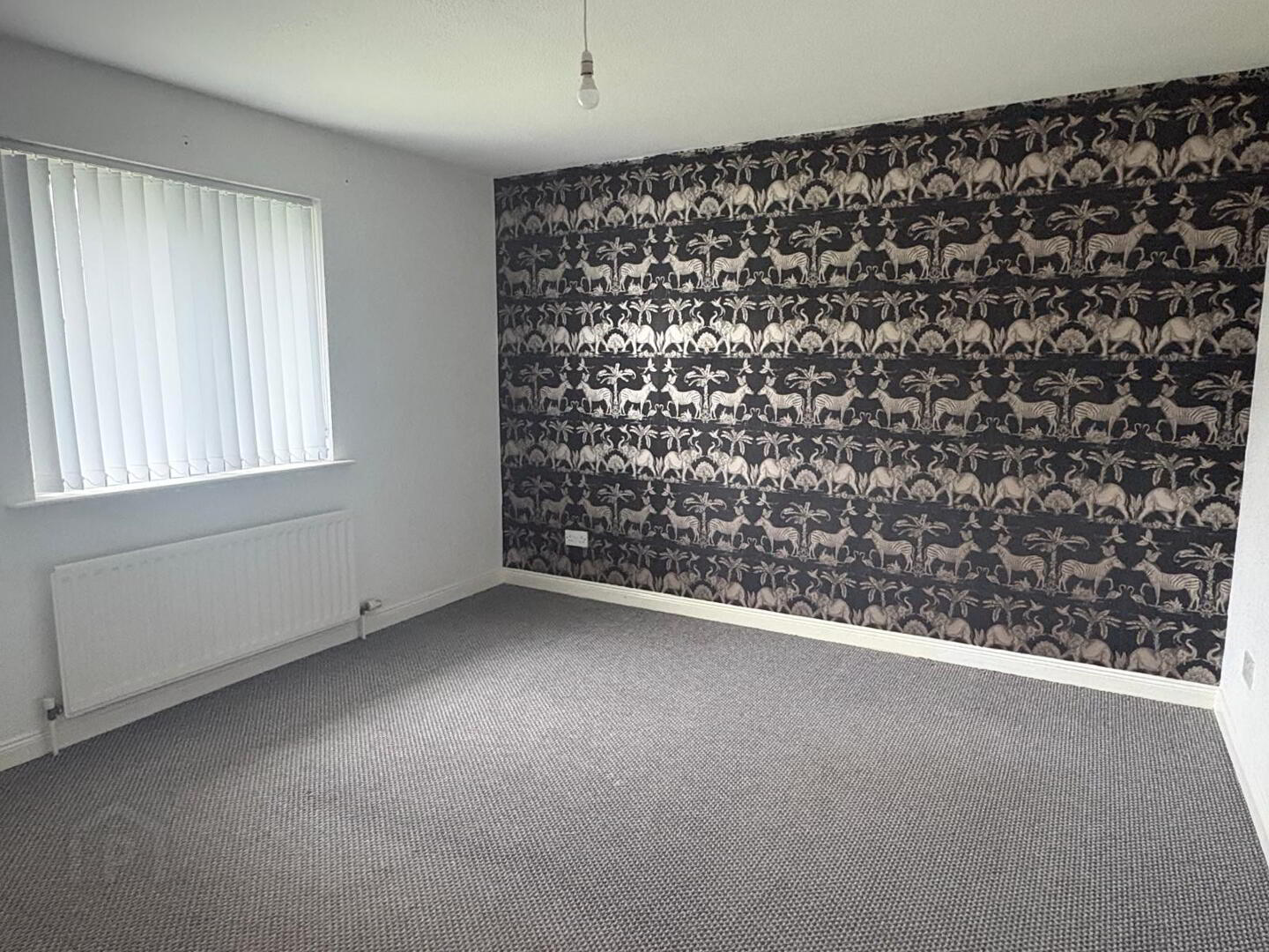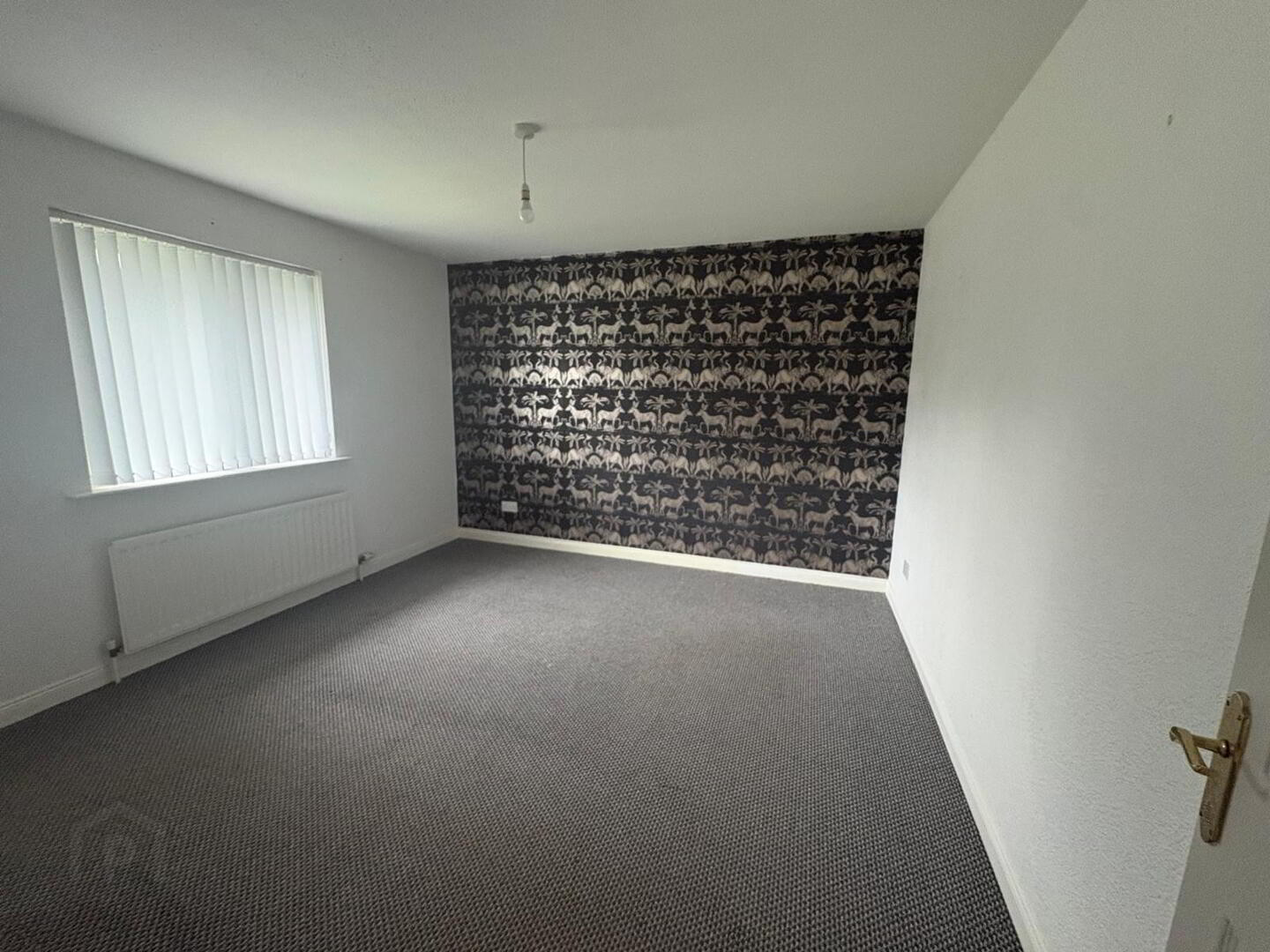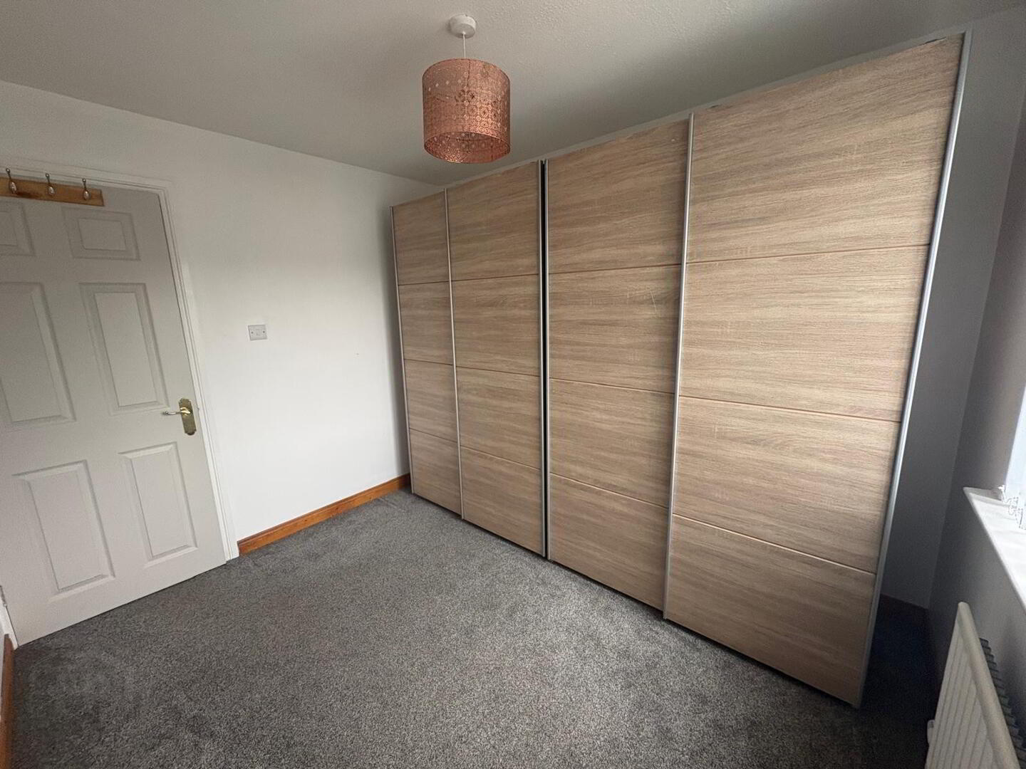 Double room with carpet to floor, three double power points and single radiator