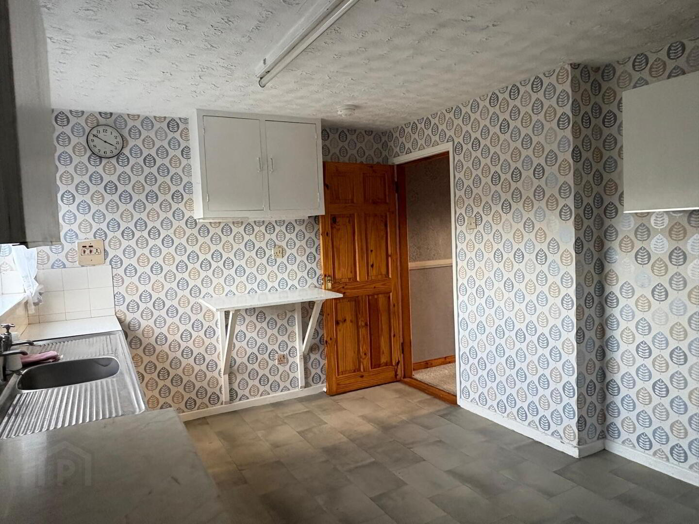 Fitted with upper and lower-level units with stainless steel sink unit with double drainer. Three single power points, double radiator and vinyl to floor.
