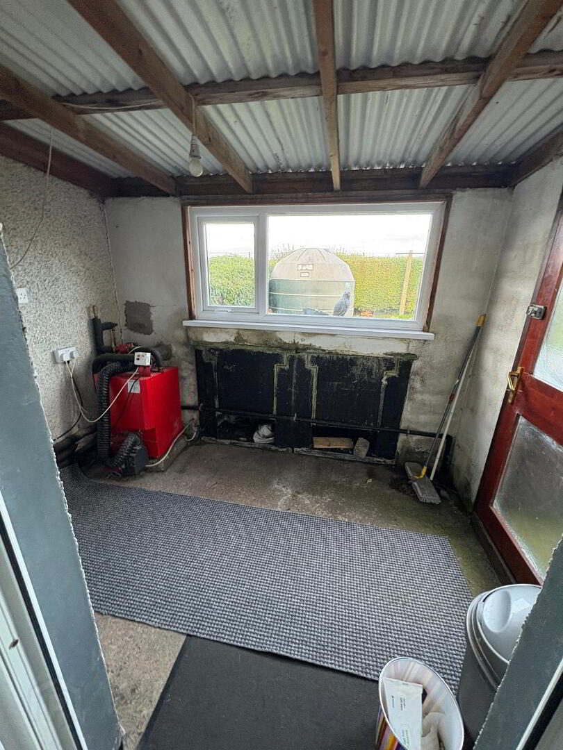 The dwelling built in or around early 1960’s is of brick construction and the doors and windows have been upgraded to UPVC double glazed throughout with a small canopy to the front. The heating is OFCH and the burner has recently been upgraded as has the insultation to the property.
