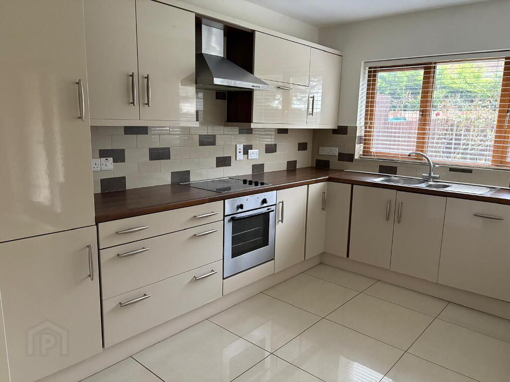 Fully fitted with high gloss kitchen incorporating integr4al fridge/freezer, dishwasher, undercounter oven, electric hob with stainless steel extractor fan over and double bowl stainless steel sink/drainer with mixer tap over. Tiled through from hallway, tiled between upper and lower-level units, three double power points plus appliance points, spotlights to ceiling and mains-controlled smoke alarm.