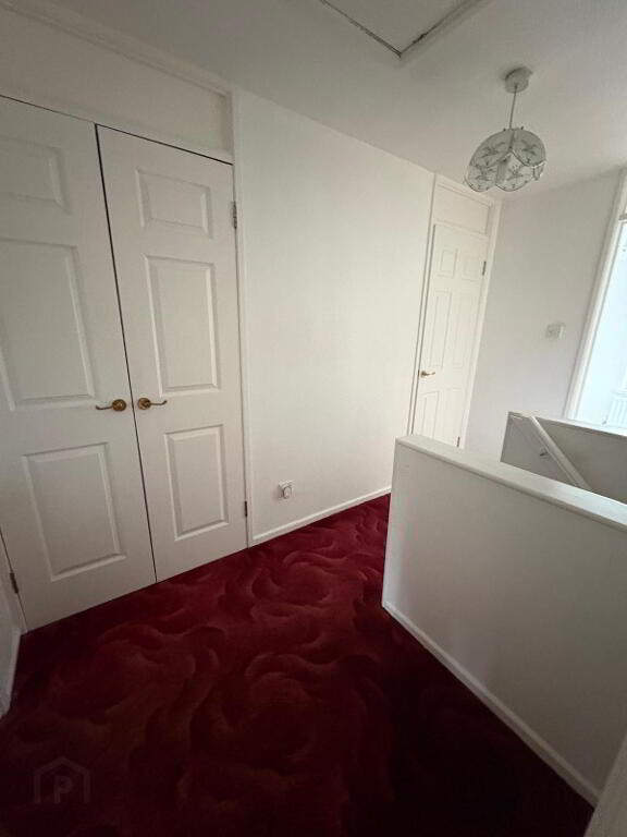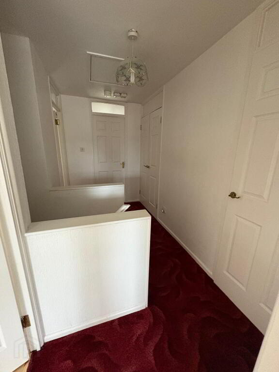 Carpet to floor and stairwell, access to attic, access to airing cupboard and single wardrobe.