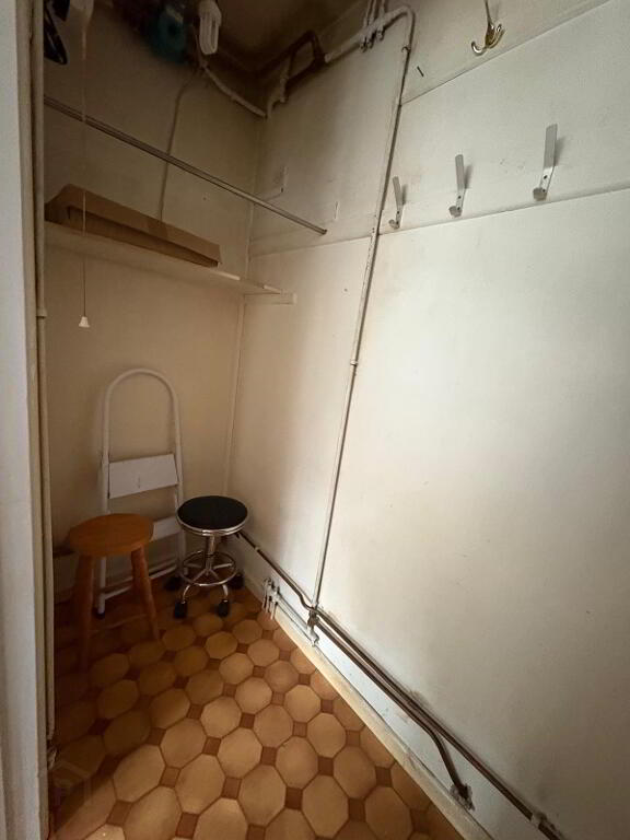 Ceramic tile to floor, single radiator, enclosed electric metre box, single radiator and heating control panel.