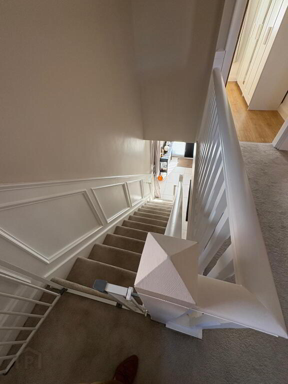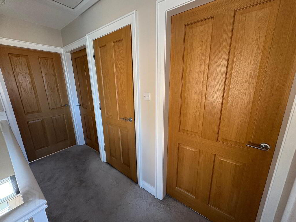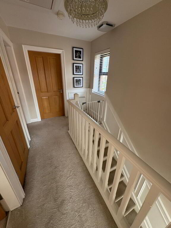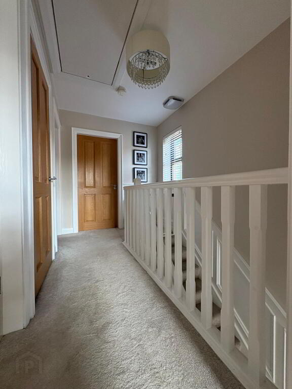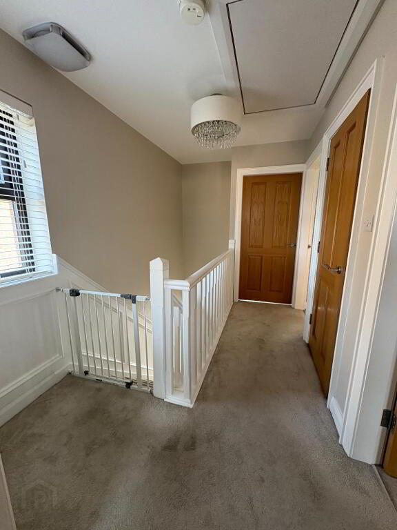 Carpet to floor and stairwell, spotlights to ceiling, Drimaster PVI unit, access to airing cupboard (maxi pod system) Single power point, access to attic with pull down ladder.