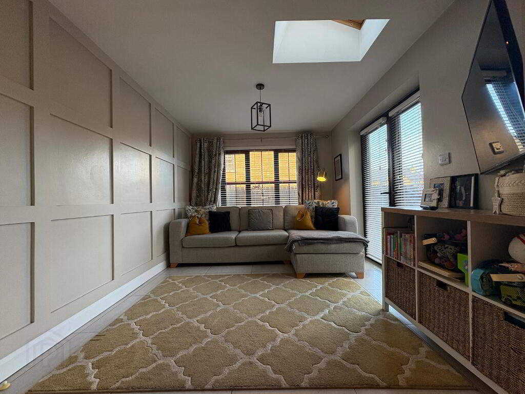 Outstanding finish to this room, open plan from kitchen with ceramic tile to floor, wooden panelling to walls, Velux widow to ceiling maximising natural light, four double power points and double doors leading to rear garden and patio.
