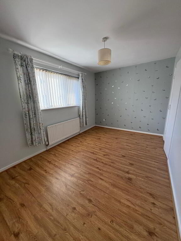 Single room with laminated flooring, single radiator and two single power points.