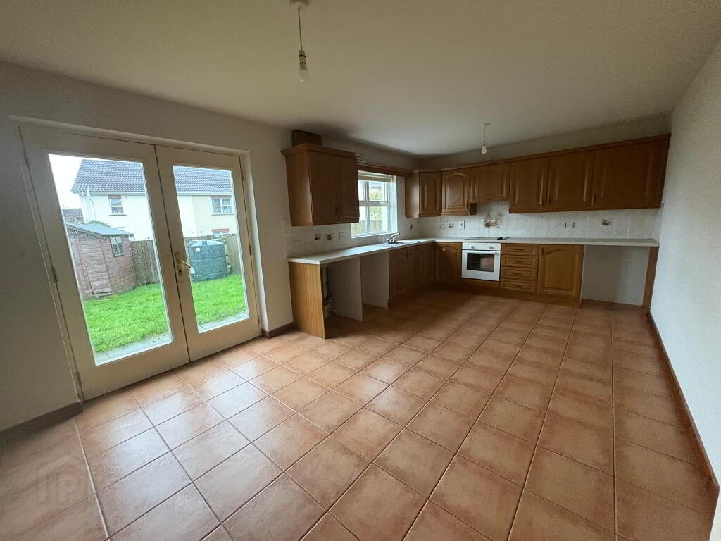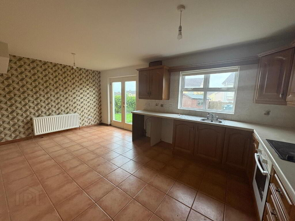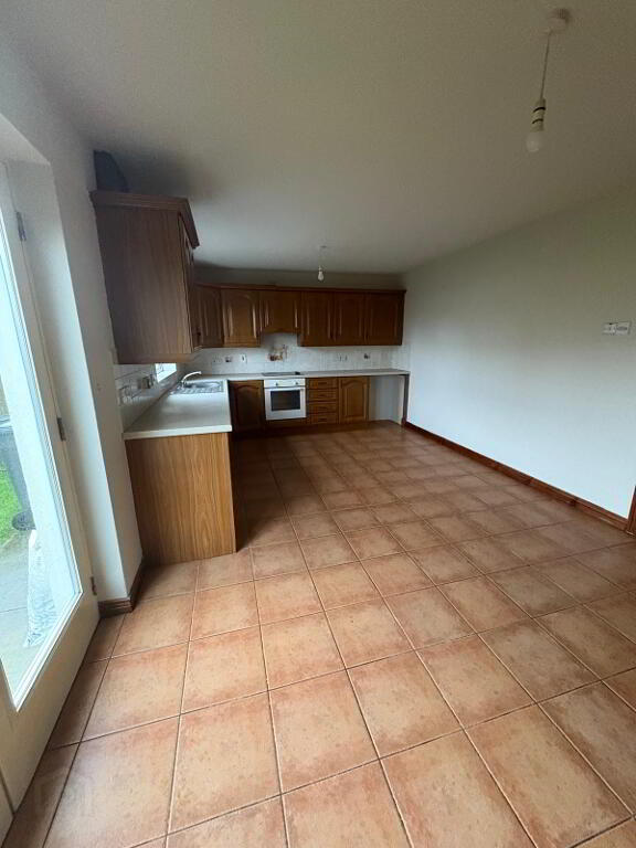 Tiled through from hallway, fitted with upper and lower-level units (tiled between incorporated under counter oven with ceramic hob and extractor fan over, single bowl stainless steel sink unit with drainer, and plumbed for washing machine. Two double power points, two single power points plus appliance points, double radiator and completed with double doors leading to rear gardens.